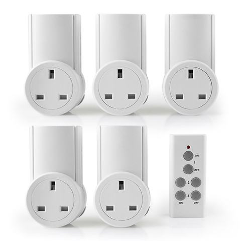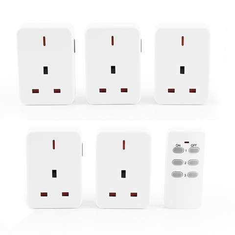 ชุดสวิตช์ไฟ RF433Mhz รีโมต1อันและเต้ารับ5อัน3120วัตต์/13A ไร้สายแบบปลั๊ก UK
