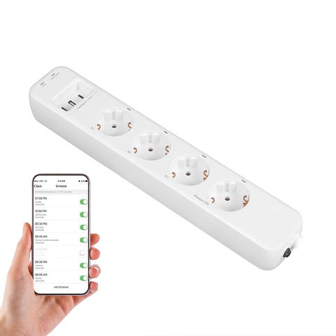 مقبس تمديد ذكي مزود بخاصية تحكم بالتطبيق WiFi ومنافذ كهربائية بالتحكم الصوتي من الاتحاد الأوروبي 4 منافذ تيار متردد مع حماية الزائد